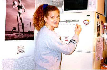 She has a T-shirt that says, "I had a date with Chris and all I got was this lousy T-shirt". On the other side are some tire streaks.